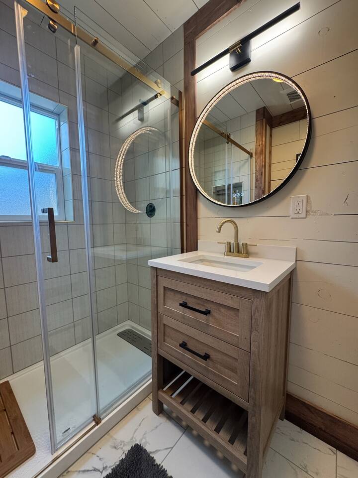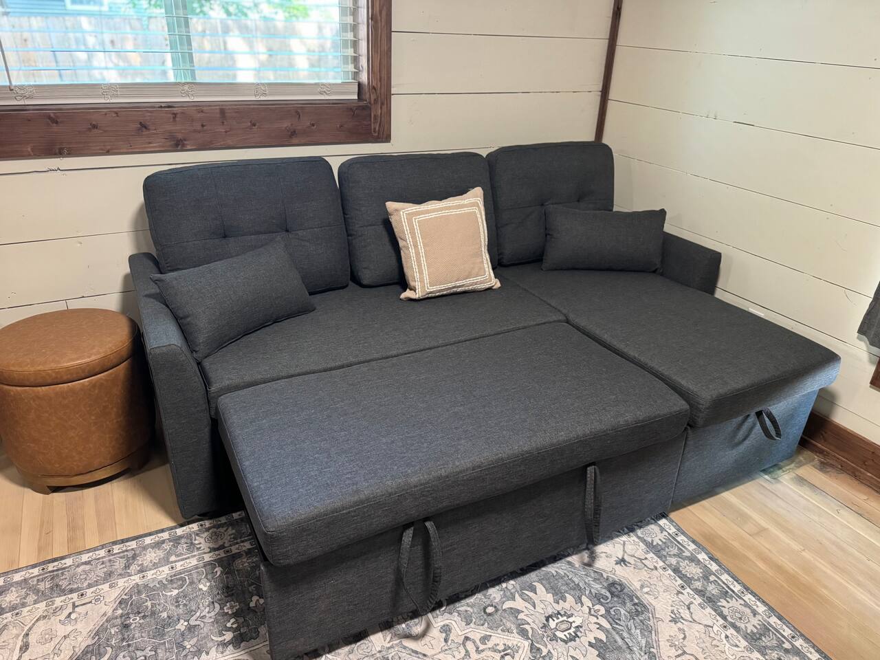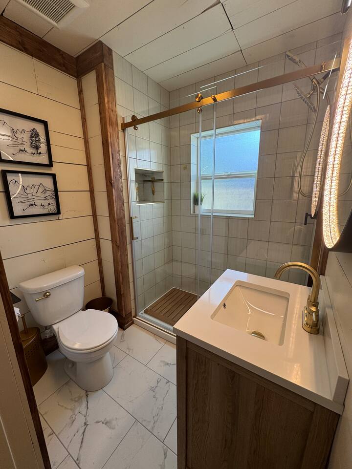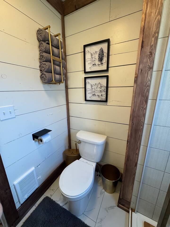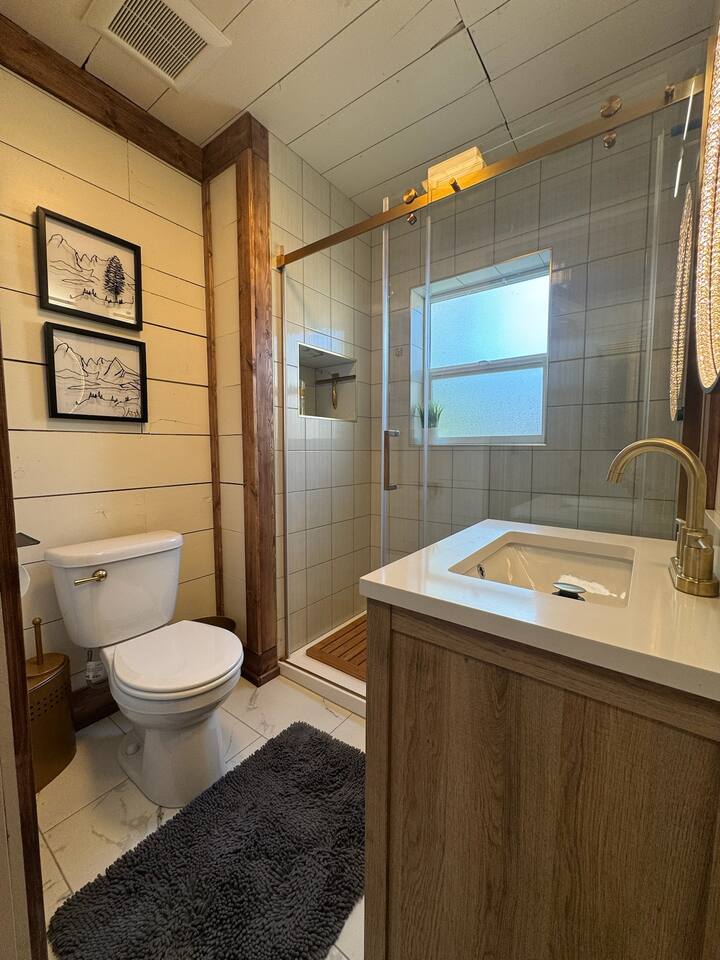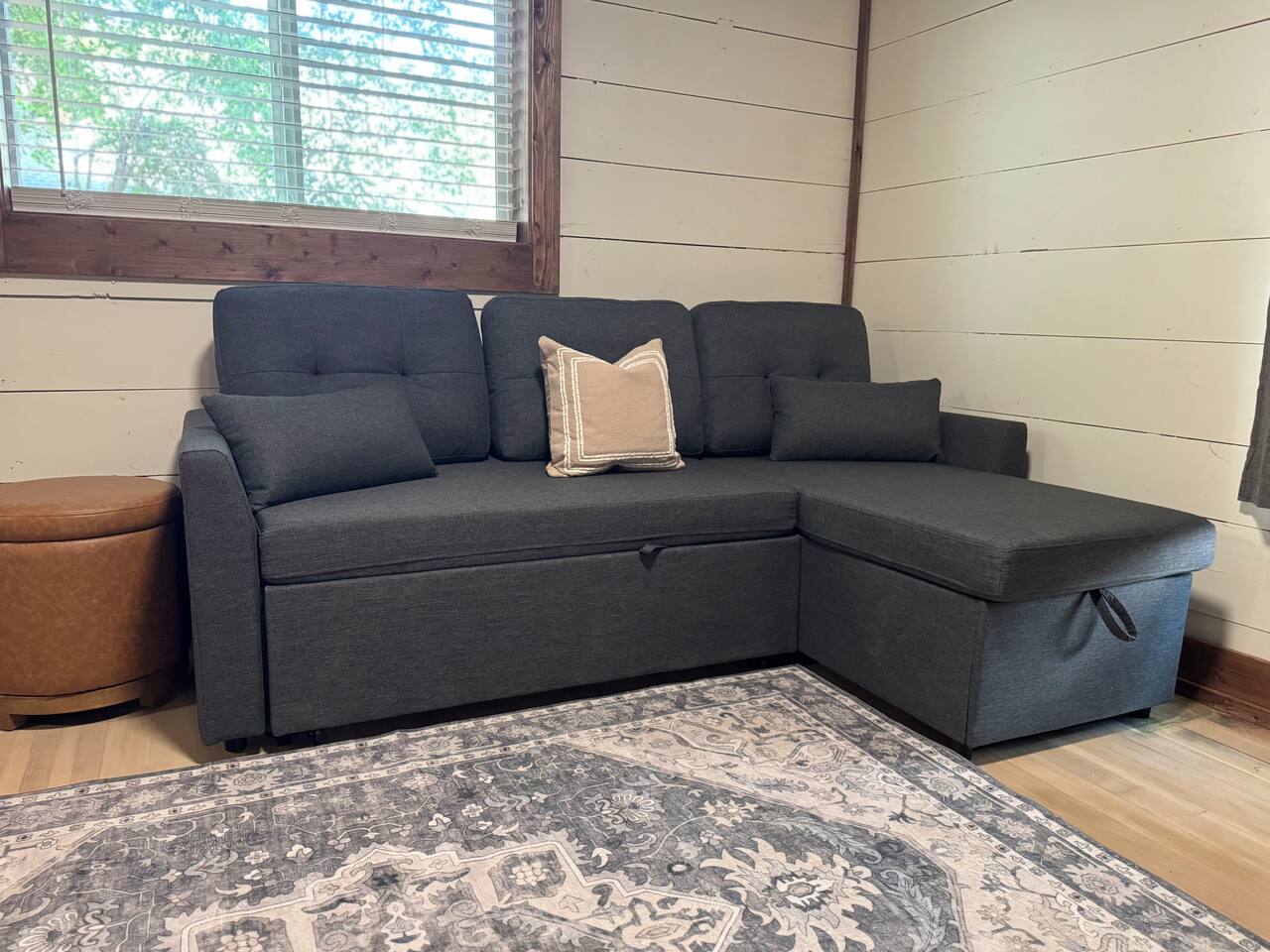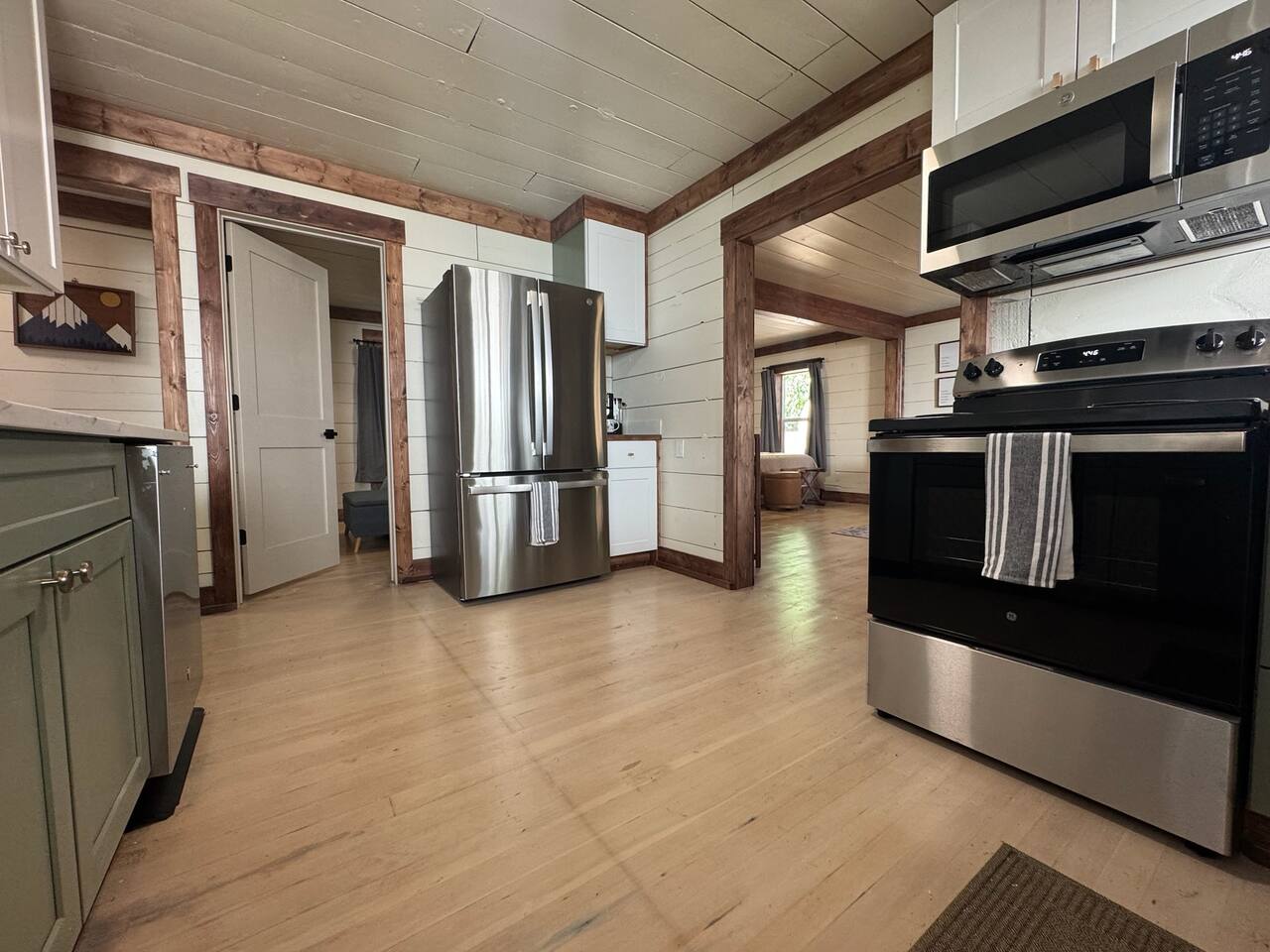 This property offers a private one bedroom with a queen bed, a full bathroom with walk-in shower and towel warmer, a full kitchen, an additional bedroom space in the studio living area, and a living/dining room space with a small convertible couch. On the back patio, you will find a 4-6 person cedar barrel sauna and a 6 person hot tub to soak away your day, adventuring, and recuperate for tomorrow! This property is available in conjunction with the yellow house next-door, which sleeps up to 10 people, if you would like to book them together to stay near family or friends in order to share your adventuring memories together. Each location has its own private hot tub.